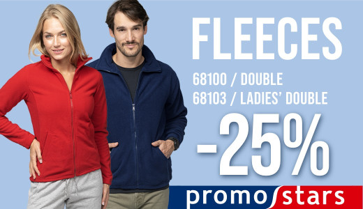 Get a 25% discount when buying the 68100 Double and 68103 Ladies’ Double fleece jackets (version without zippered pockets). The promotion is valid until 31.07.2026, or while stocks of the 68100/68103 last. See terms and conditions for details.